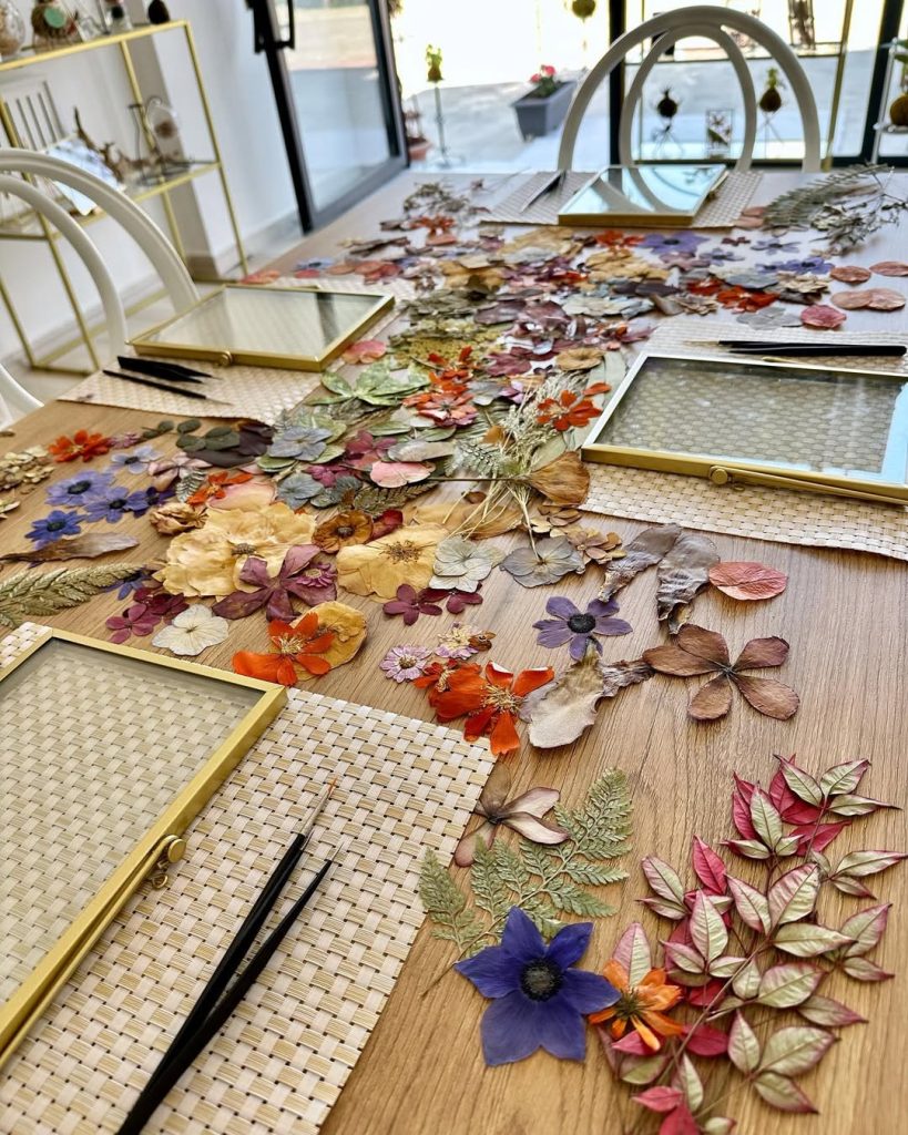 Workshoplarımızda, kuru çiçekler ve doğal materyaller kullanarak özgün tasarımlar oluşturuyor, doğanın güzelliğini sanata dönüştürüyoruz.